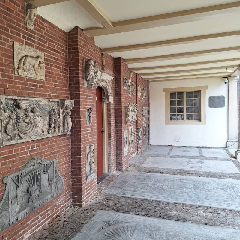 We lopen verder de gracht, de Doelenbrug over en staan voor het Rijksmuseum van Oudheden.