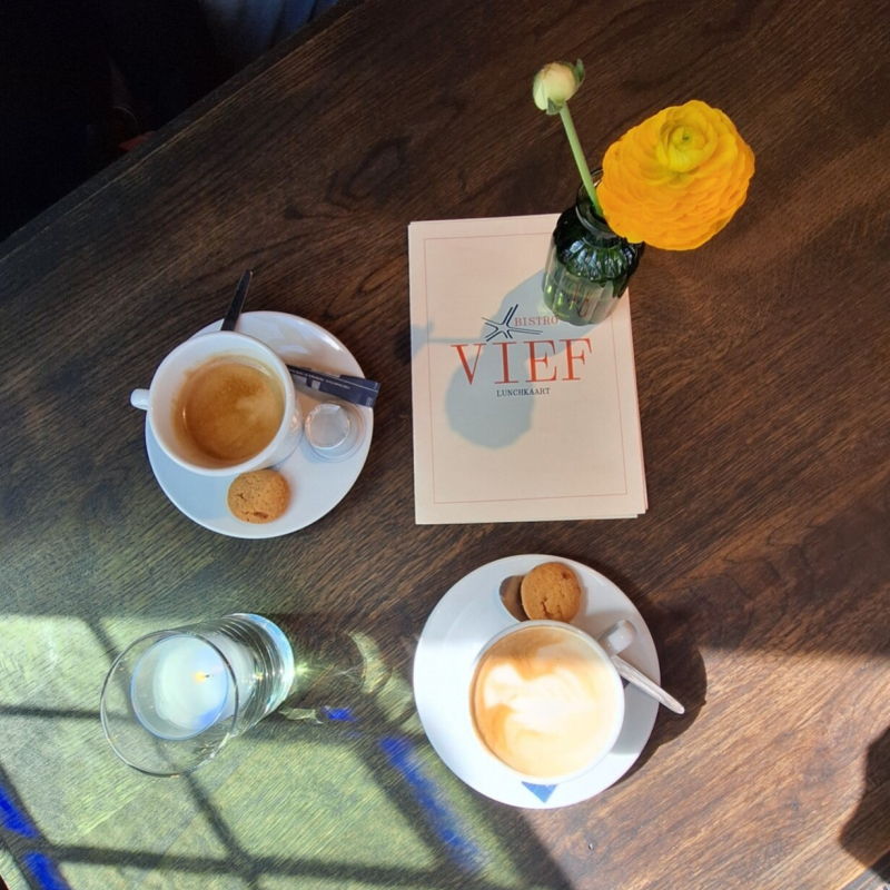 op het hoekje zit Bistro Vief eerst maar een koffie.