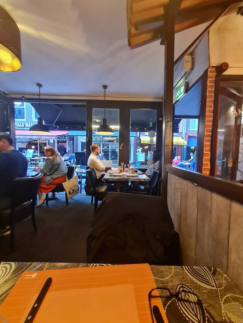 Wij kregen een tafeltje vlakbij de uitgang, de eigenaar Santosh gaf ons de kaart en nam onze bestelling voor de drankjes aan.