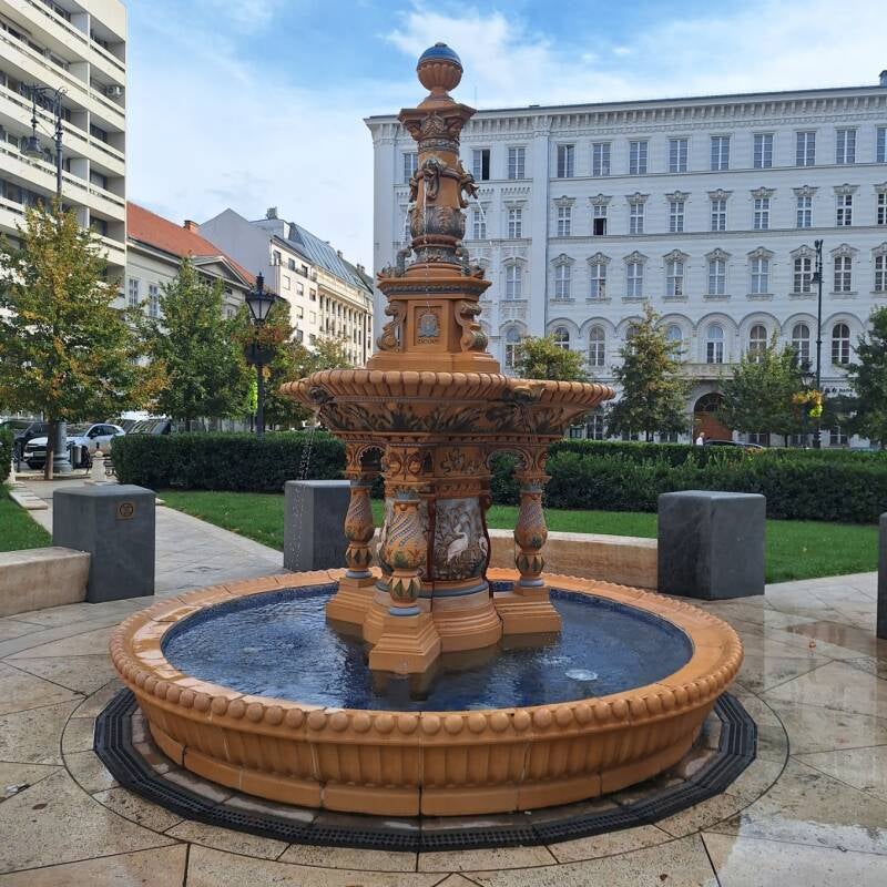We komen op een plein uit met twee hele mooie fonteinen