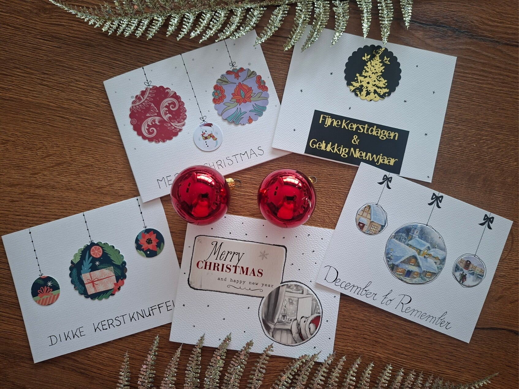 Elke kaart is met de hand gemaakt, de afbeeldingen komen van oudere kerstkaarten. Er zijn geen twee dezelfde, iedere kaart is uniek.